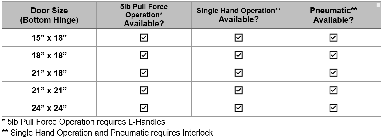 Most interlock doors require two hands to operate. If you need an interlocked trash or linen chute that can be operated with one hand, Columbia Chutes has you covered. Our Single Hand Operation add-on accessory gives your occupants the freedom to use your chute with ease. Are you looking for more ADA-friendly options? Pair your Single Hand Operation doors with our 5lb Pull Force Operation add-on!